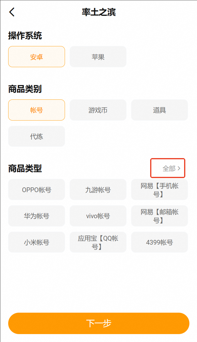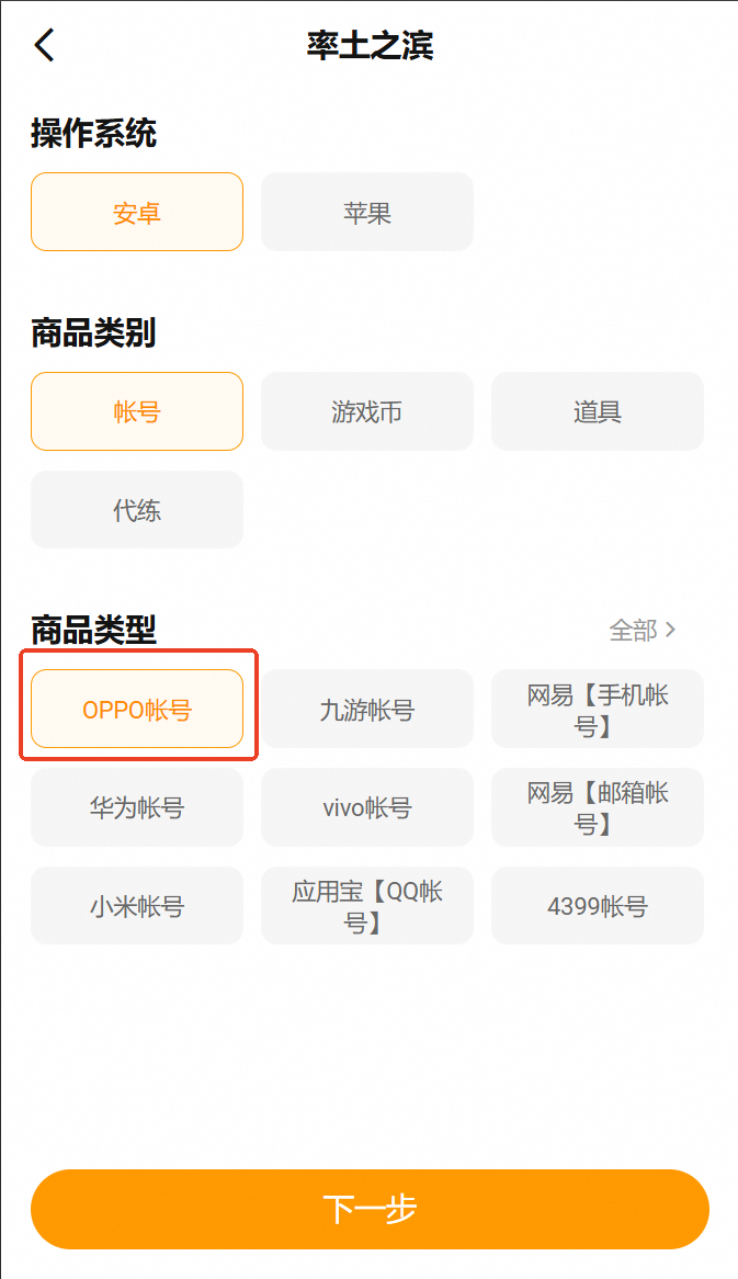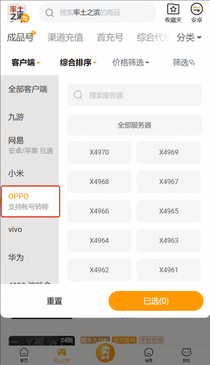 3. OPPO用户想要继续购买OPPO转移号,可在《率土之滨》商品页筛选OPPO转移客户端即可查看。