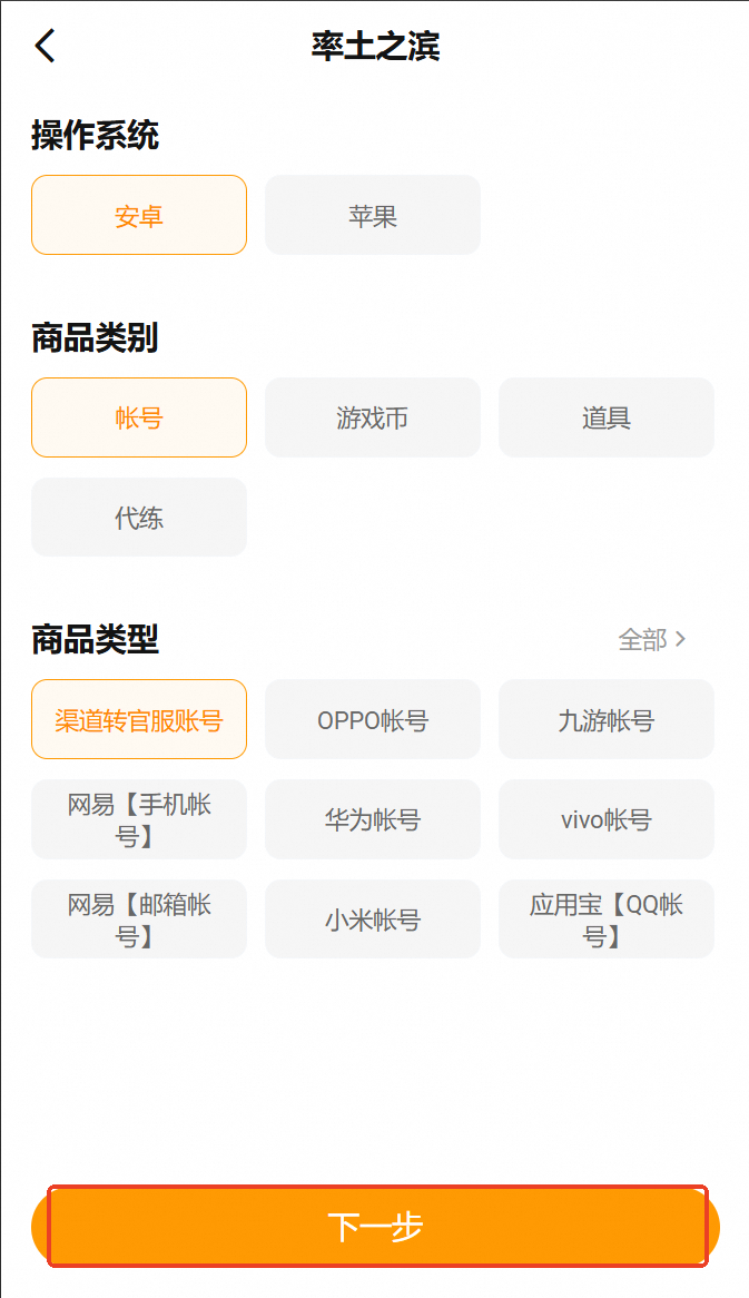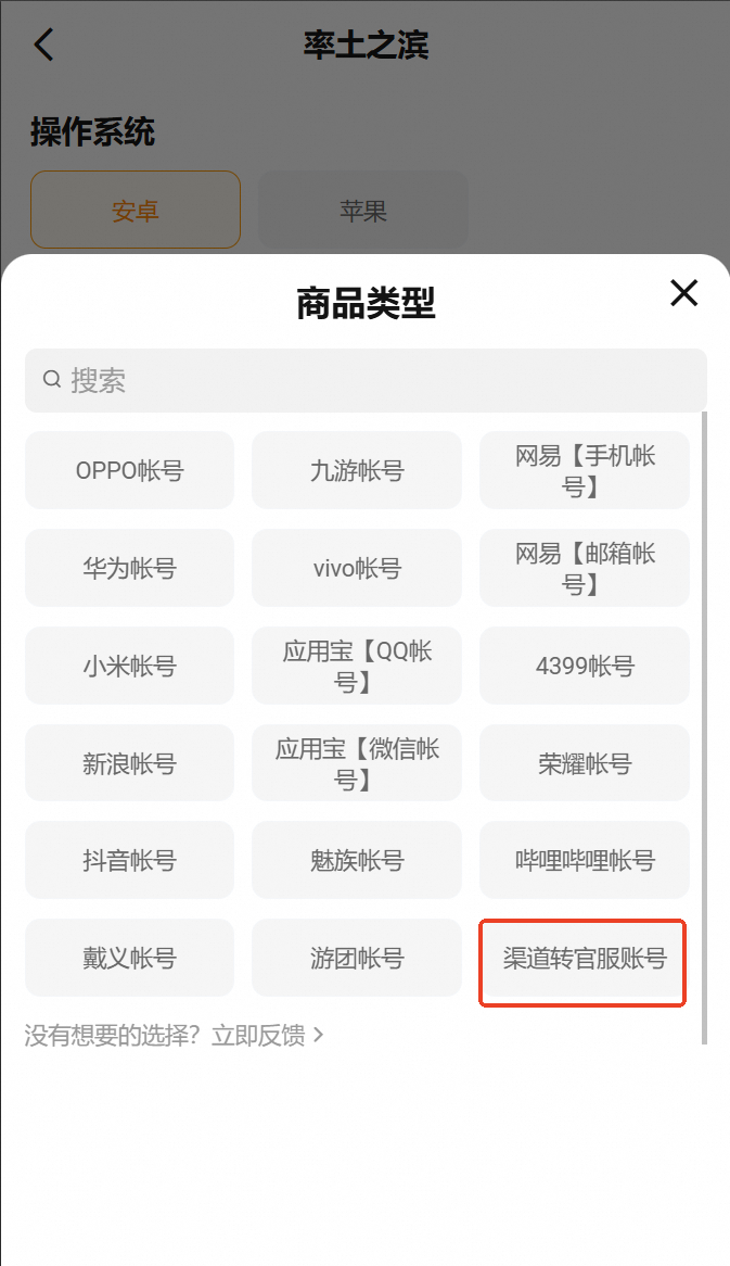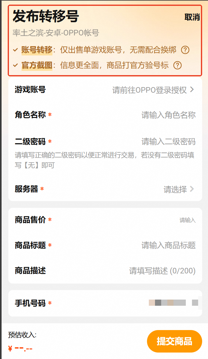 如果已通过OPPO渠道转移至网易渠道且需要出售,需通过选择【渠道转官服账号】商品类型发布。